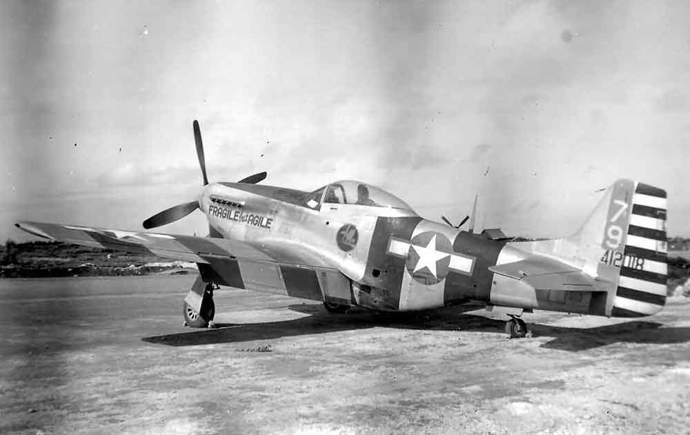 Samolot przybył do jednostki 17 lutego 1945 roku i został przydzielony pilotowi Lt. Bertramowi Lee, który nadał mu nazwę Fragile but Agile. Nie wiadomo, czy była to aluzja do różnic między Mustangiem a P-47, ale z dzisiejszej perspektywy wydaje się to bardzo sugestywne.