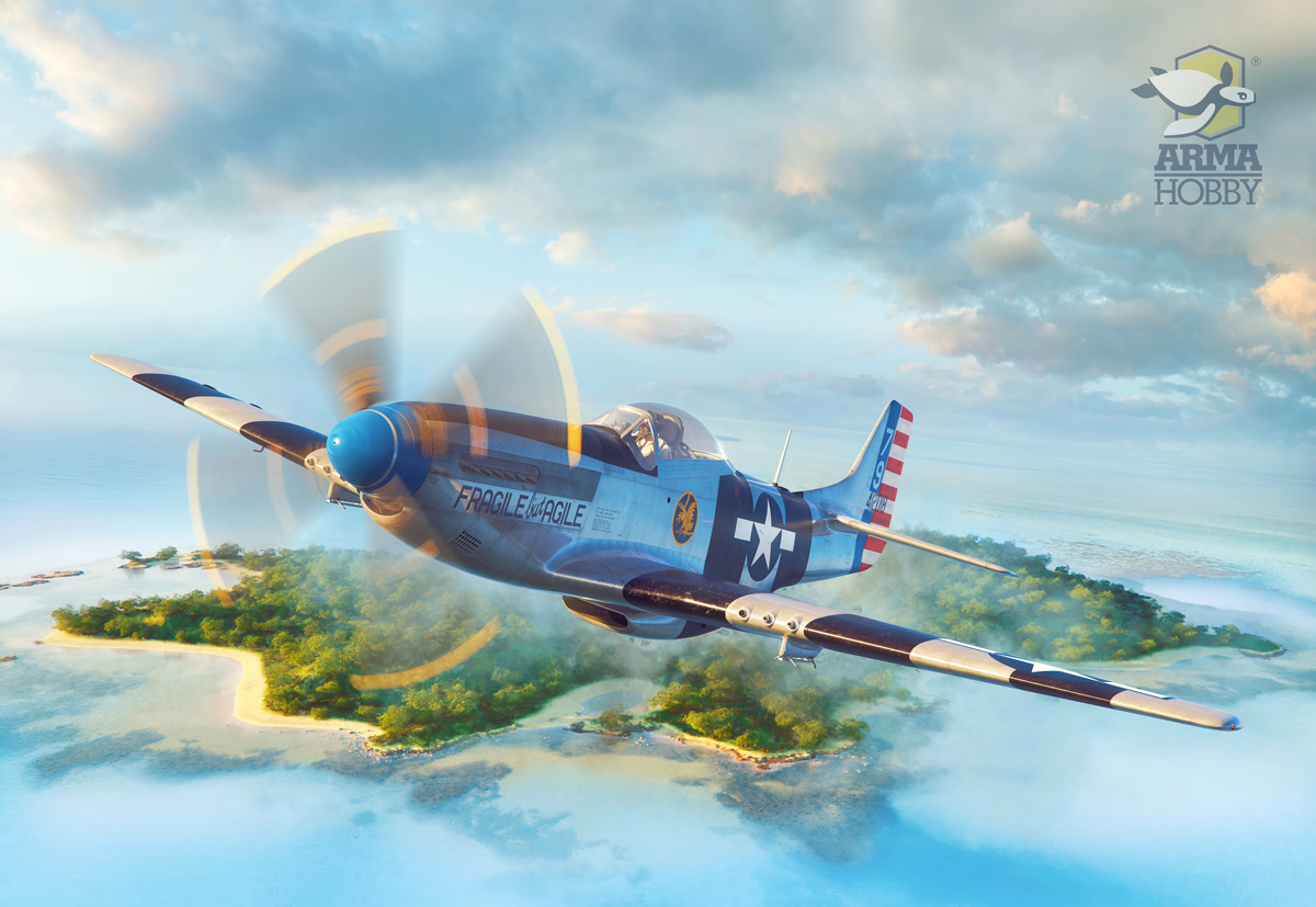 Tytułowe malowanie zestawu Arma Hobby 70071 przedstawia Mustanga P-51K „Fragile but Agile” z 342. Dywizjonu Myśliwskiego, 348. Grupy FEAF, stacjonującego na Filipinach w 1945 roku. Ten efektowny samolot w niebieskich oznaczeniach dywizjonowych symbolizuje moment przełomu – gdy niechciane początkowo Mustangi udowodniły swoją wartość w ciężkich warunkach Pacyfiku, stając się kluczowym elementem alianckiej ofensywy przeciw Japonii.