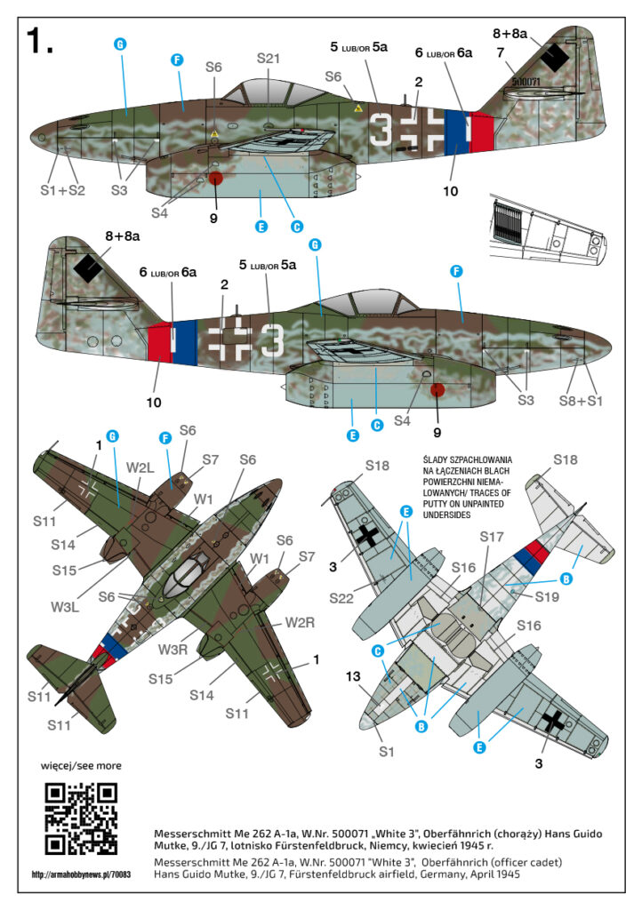 Trzy Messerschmitty – przegląd malowań zestawu premierowego Me 262 A-1a 1/72