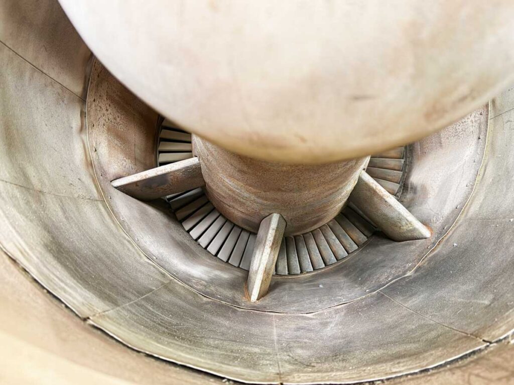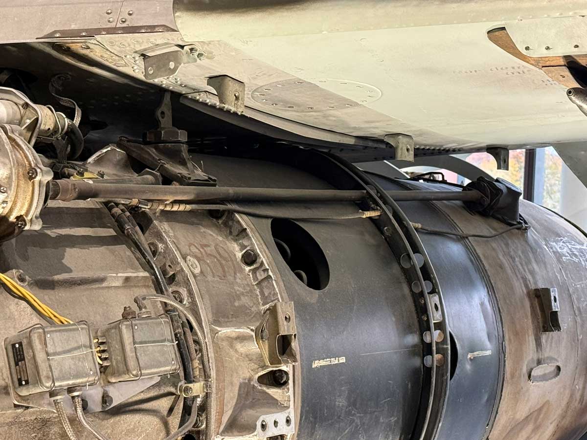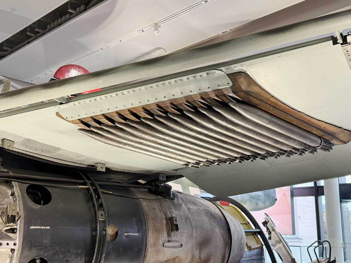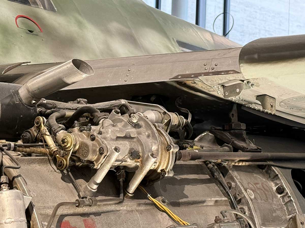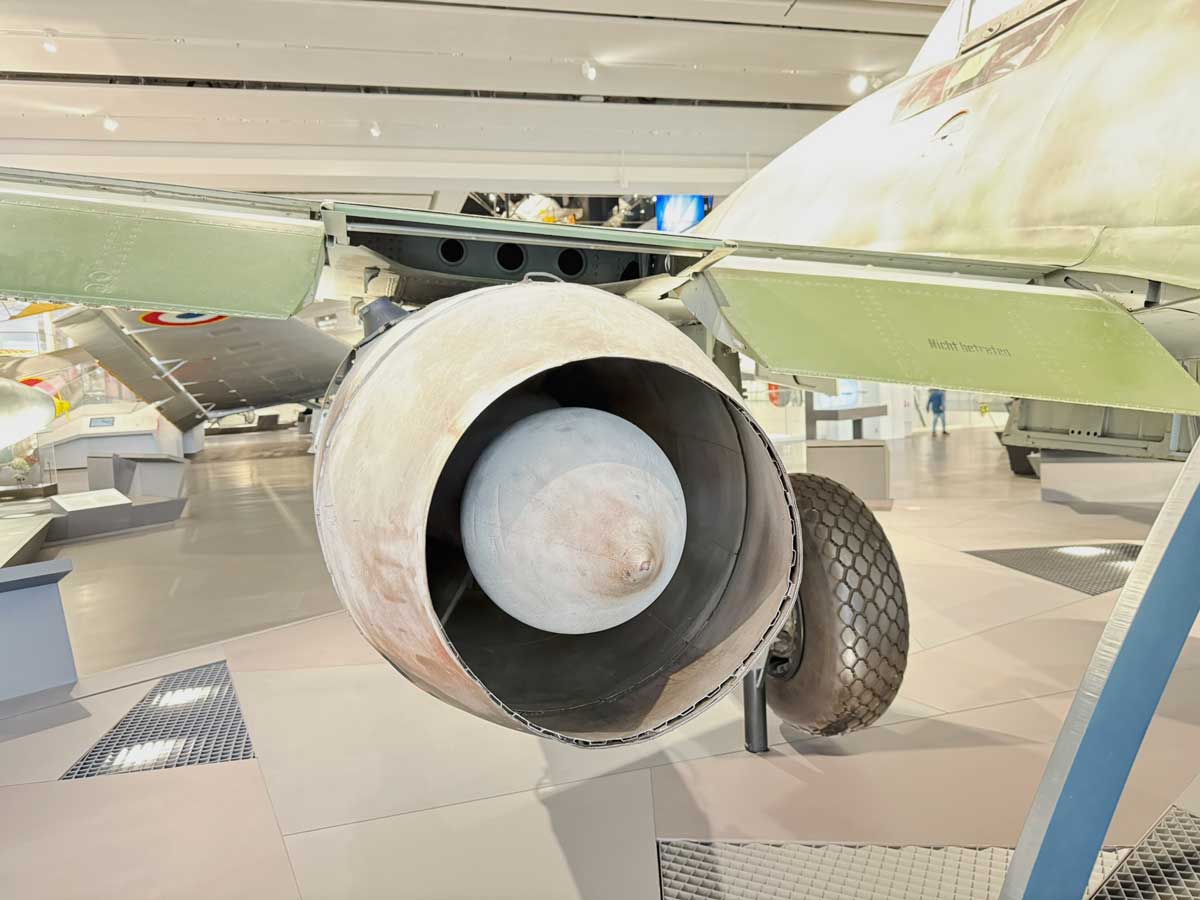 Widok Me 262 A-1a 500071 z prawej burty. Widać klapke pokrywy luku radiowego i charakterystyczne przesunięcie krzyża na niej. Zdjęcie Assizbiz.