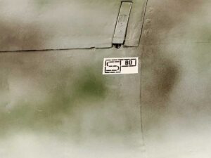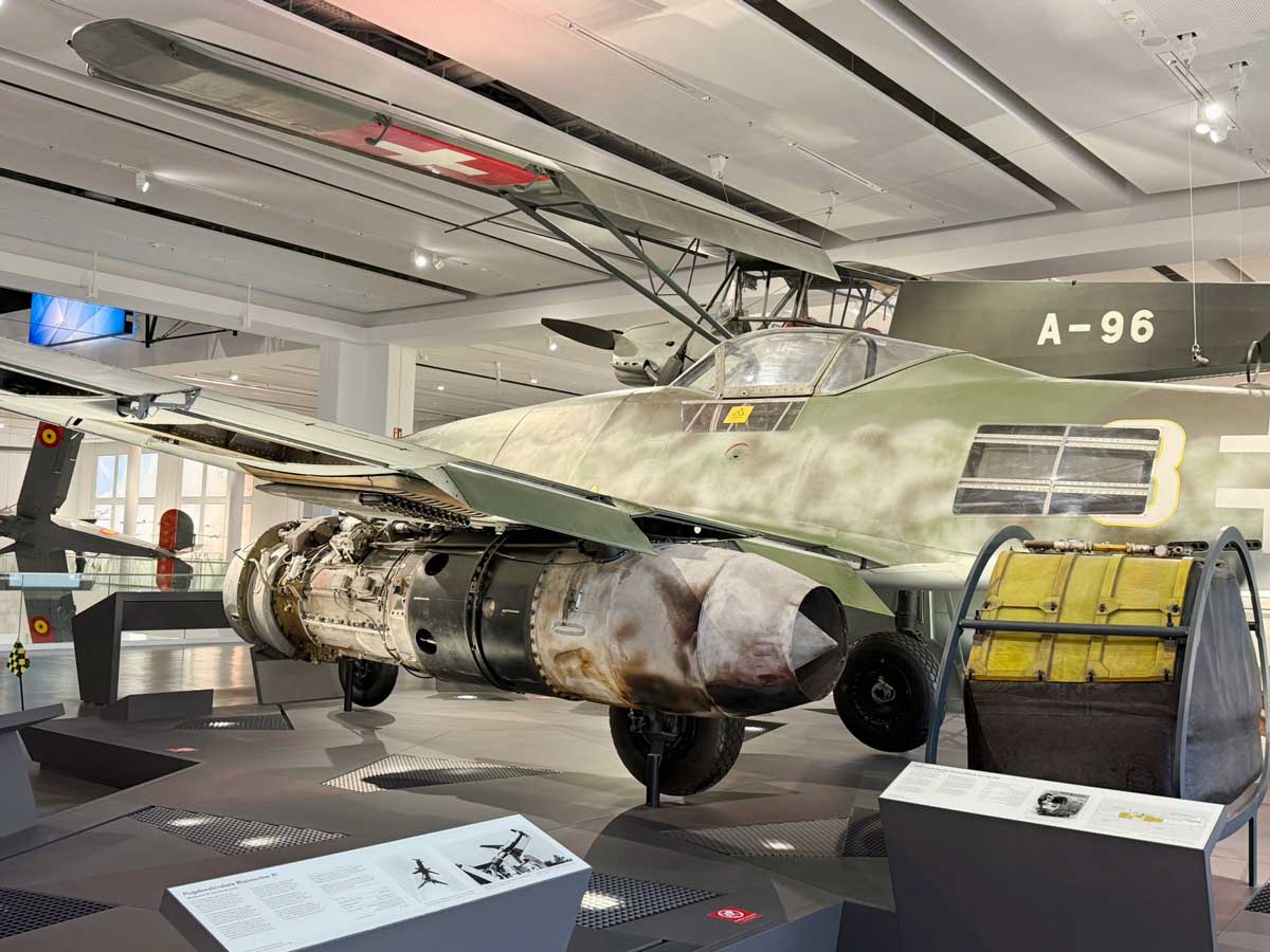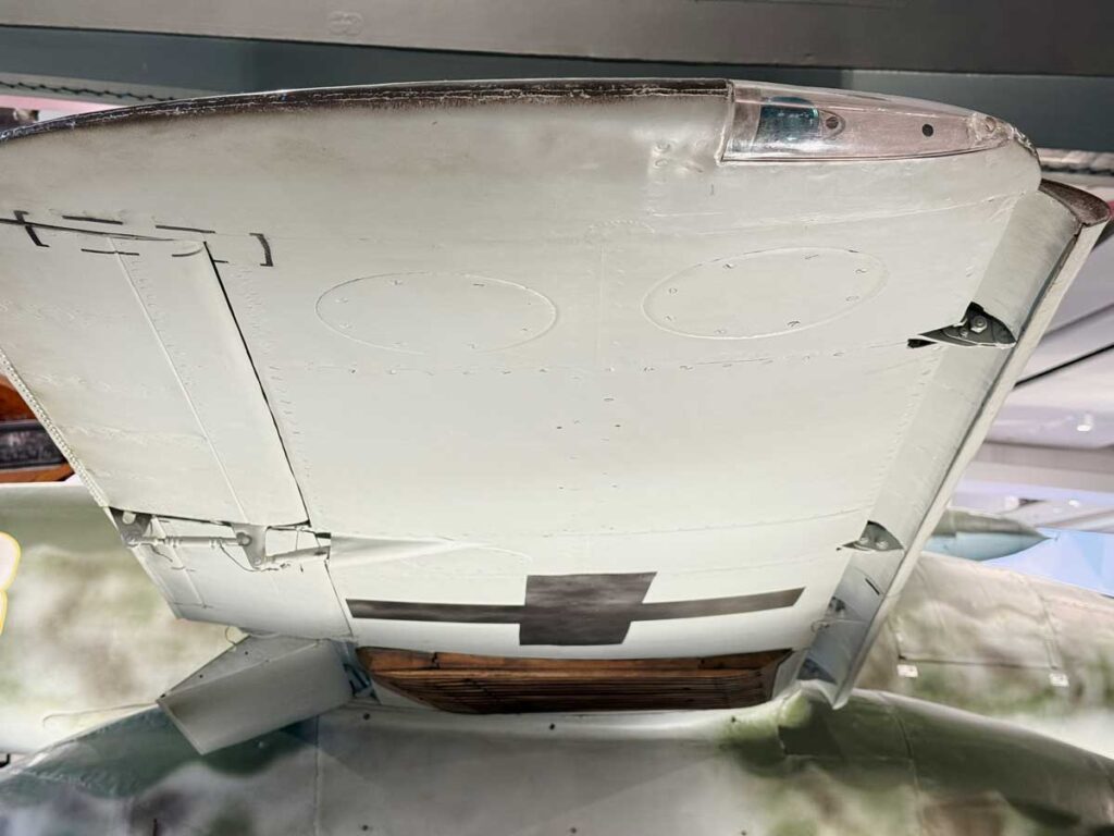 Historia tego egzemplarza obejmuje produkcję w improwizowanej leśnej montowni, charakterystyczny schemat malowania oraz ostatni lot zakończony internowaniem maszyny w neutralnej Szwajcarii. Dla modelarzy jest to szczególnie interesujący przypadek, ponieważ zachowany samolot pozwala połączyć źródła historyczne z obserwacją autentycznych detali konstrukcji i wykończenia.