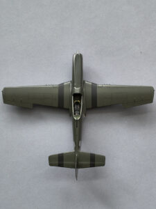 Underside of the wing: two shades of “silver”. Areas that were filled on the real thing – I paint with a grey-tinted metalizer. Natural metal – Gunze Super Metallic (Dural). The rest of the airframe – dark green.