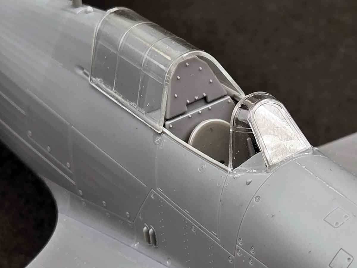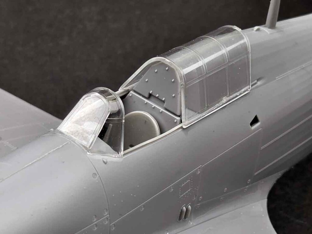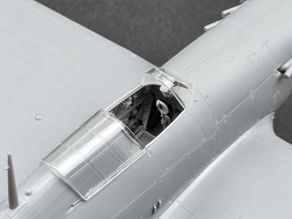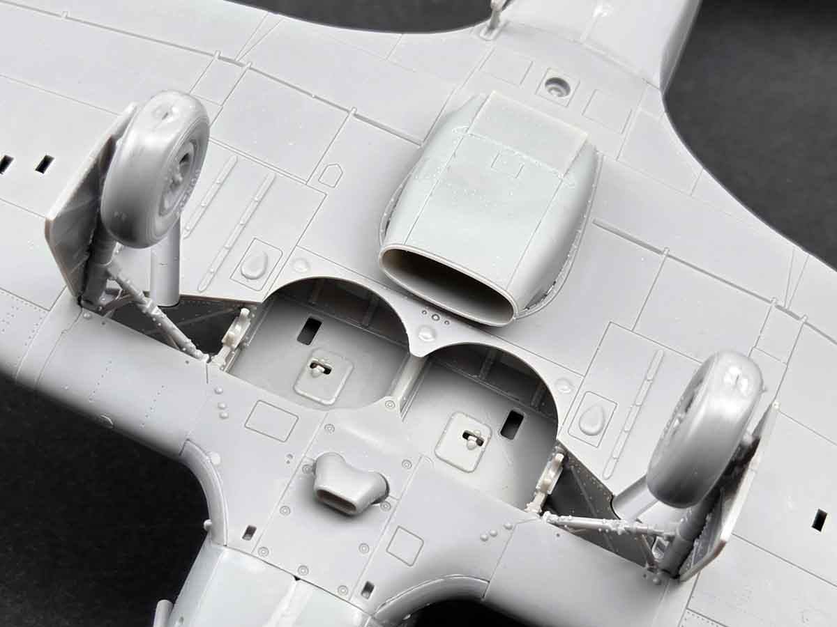 After joining the fuselage with the wing, assembly proceeds very similarly to the Mk II kits. The differences concern mainly: