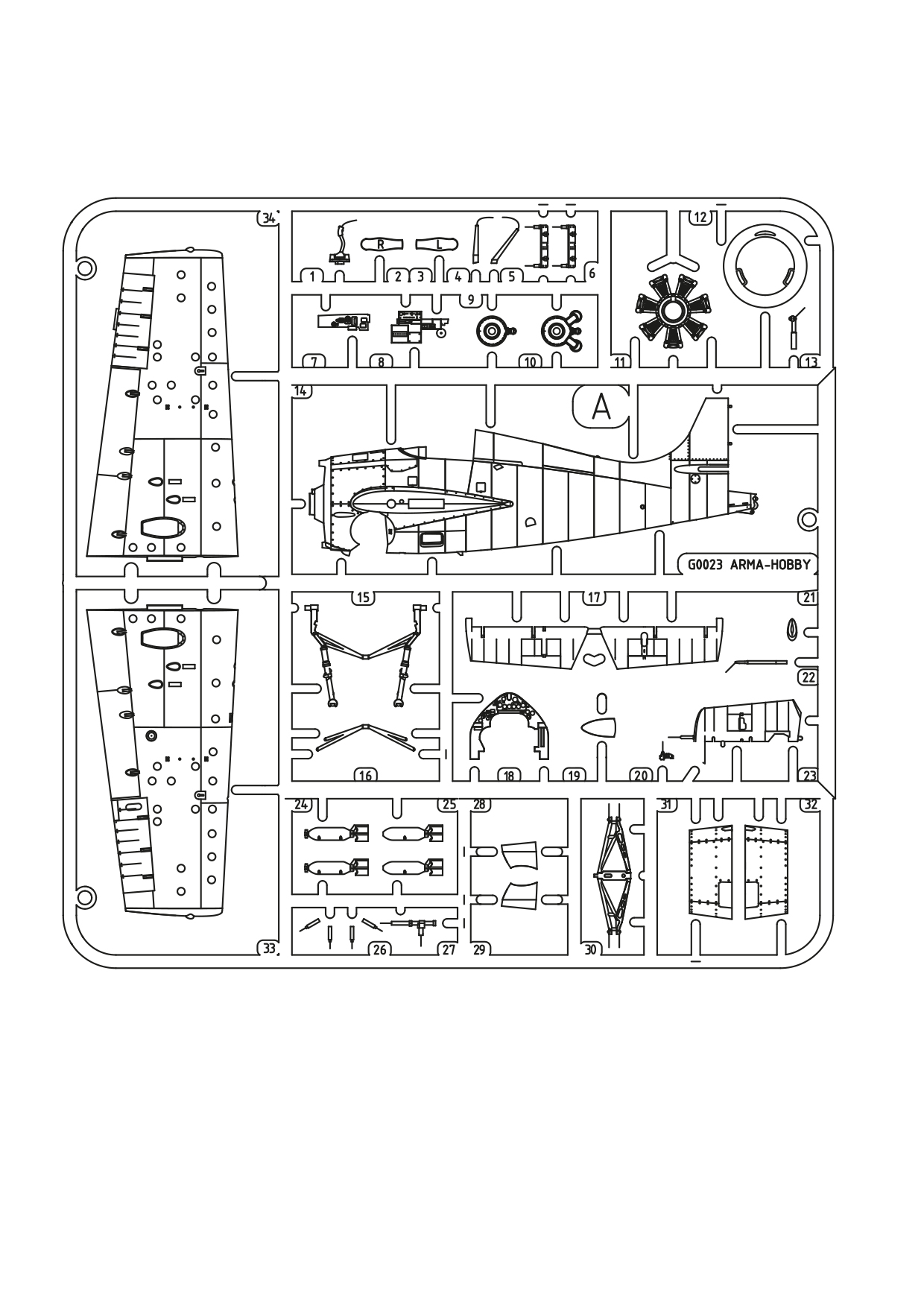 The Arma Hobby 70090 F4F-3 Wildcat 1/72 kit does not use parts from earlier F4F-4 or FM-2 Wildcat models. It is a completely new tooling of this version of the Wildcat.